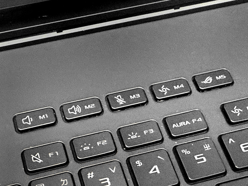 至於螢幕上方的視訊鏡頭也提升至 1080p FHD 等級、支援 Windows Hello ,螢幕下方則可以看到蝕刻有 ROG Strix 字樣。