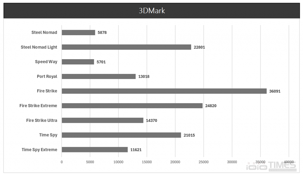至於 3DMark 常規測試部分,從數據表中可以看到總體的成績算是蠻出色的,畢竟是強強聯合的配置,包括像是 DX12 的 Speed Way、Steel Nomad 等項目都有接近 6,000 分的表現, Port Royal 光追成績也達到 13018 分,Time Spy 與 Fire Strike 這兩部分的成績也都相當不錯,可以驗證新版 SCAR 18 在 3D 性能上能符合玩家需求。