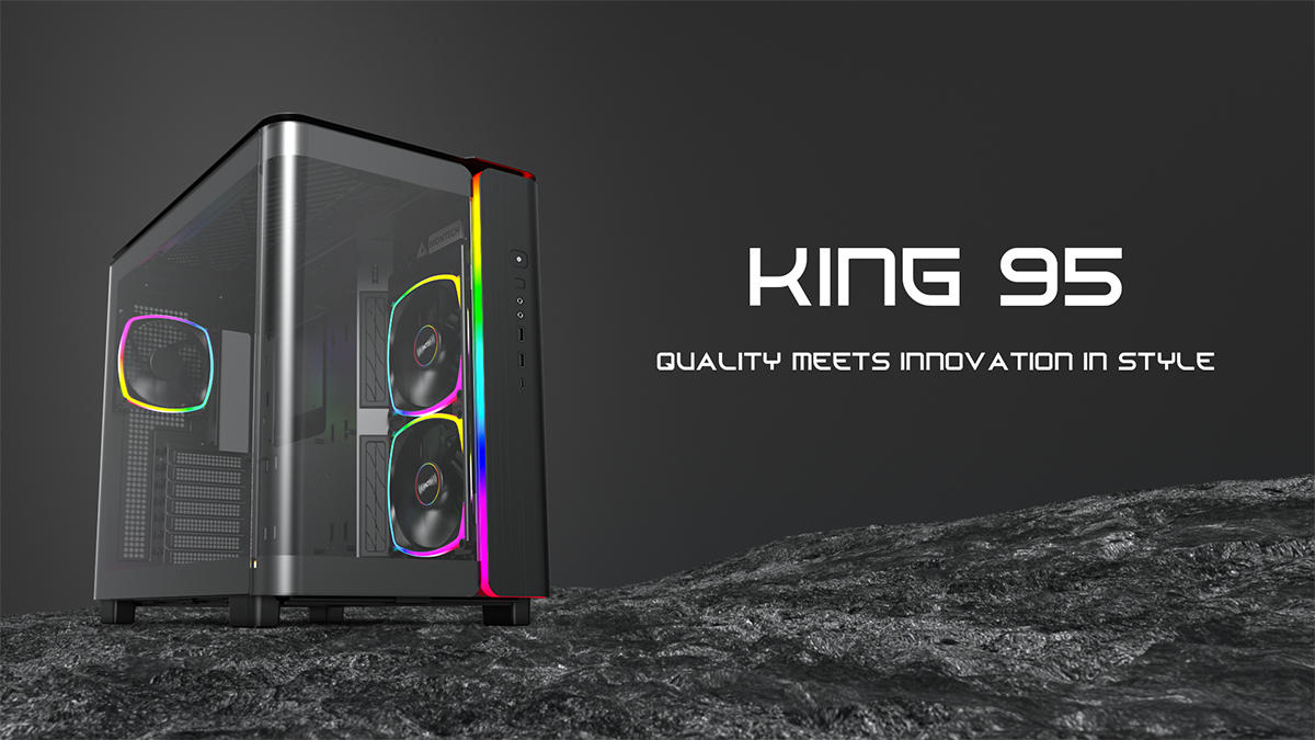 以出色的美學和多功能性無縫融合為特點,KING 95 系列以令人驚嘆的 4mm 曲面鋼化玻璃脫穎而出,提供完整的全景視野。其經過深思熟慮的設計和工程表現在流暢的理線上,確保內部整齊無比且精緻。ARGB 燈條增添了一抹光彩,注入了動態的氛圍,用戶可以自定義燈光效果。