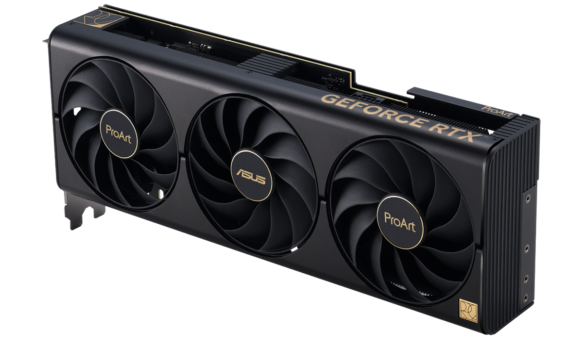 除了有利於玩家,高階顯示卡也常被應用在全球工作站,推動AI、相片/影片編輯、遊戲研發/製作等領域;重要的是,特定族群更需要特定的顯示卡產品滿足其不同需求,為此華碩也推出 ProArt 系列,專為尋求風格簡潔、外型精巧的創作者與專業人士量身訂製,其能快速安裝至已搭載多張顯示卡的電腦主機,搭配加大軸向式風扇、0dB 技術與通風金屬背板,可實現出色散熱及 3D 渲染,成為更符合使用者期待的創作神隊友。