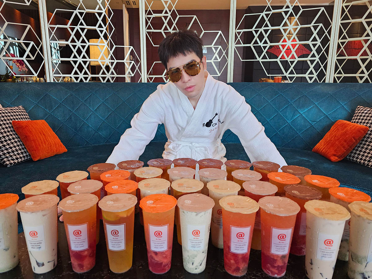 老蕭到新加坡除了每次都大吃美食外,自己的品牌茶飲更是不能錯過的重點,本來在泡澡的他,聽到「署茗職茶AtTea」的飲料到了,即使穿着浴袍也馬上來到客廳先飲為快,當然也大方的招待所有幕前幕後團隊成員。老蕭的手搖茶品牌「署茗職茶AtTea」深受新加坡人喜愛,目前正積極籌備開設當地的第六家分店。今年,署茗職茶也將正式進軍馬來西亞,並隆重推出全新升級飲品,以饗各地消費者不同的口味喜好。