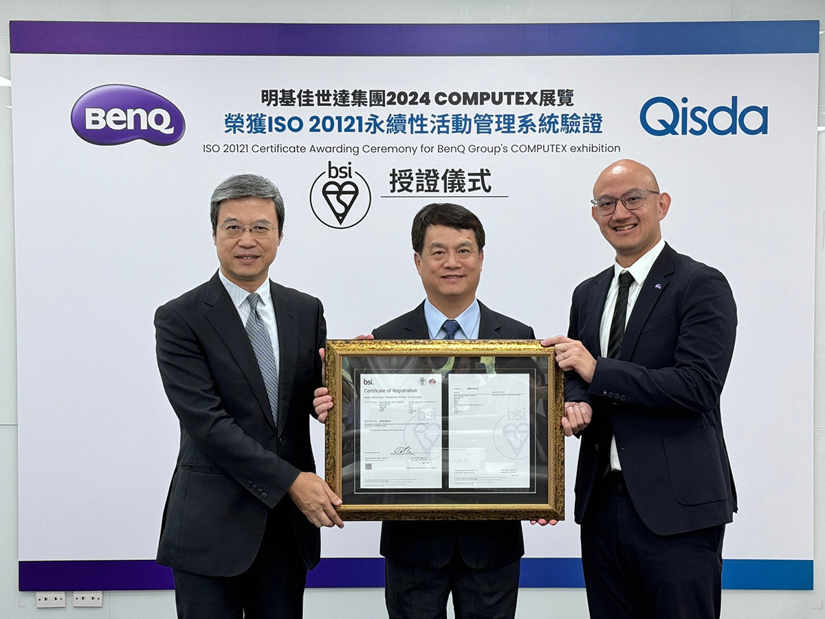明基佳世達集團綠色展會再進化,於 2024 年台北國際電腦展 COMPUTEX 展覽盛會中,遵循國際 ISO 20121 永續性活動管理系統,設定 21 項 ESG 永續目標,在展會後全數達標並通過第三方專業驗證,繼去年首次取證後,成為全球第一與唯一在 COMPUTEX 功續證的集團。