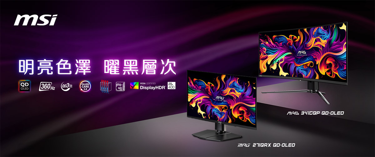 活動現場將展示兩款 QD-OLED 電競顯示器,分別是「MAG 341CQP QD-OLED」和「MPG 271QRX QD-OLED」。這些顯示器配備 HDMI 2.1 連接埠,支援家用遊戲主機 PS5 高達 48Gbps 的頻寬、120Hz 刷新率、可變更新率(VRR)和自動低延遲模式(ALLM)。此外,還擁有 0.03ms (GtG) 的快速反應時間以及 DisplayHDR True Black 400 認證。