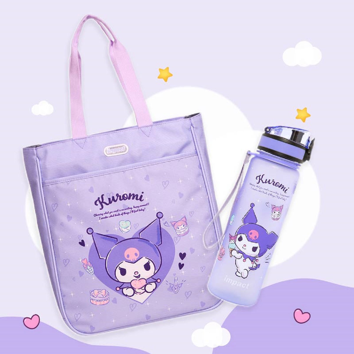 好禮一、酷洛米上學趣大禮包,內含酷洛米造型才藝袋+筆袋,0元帶回家;好禮二、酷洛米超萌大禮包,內含酷洛米造型才藝袋+水壺,優惠價 99 元。