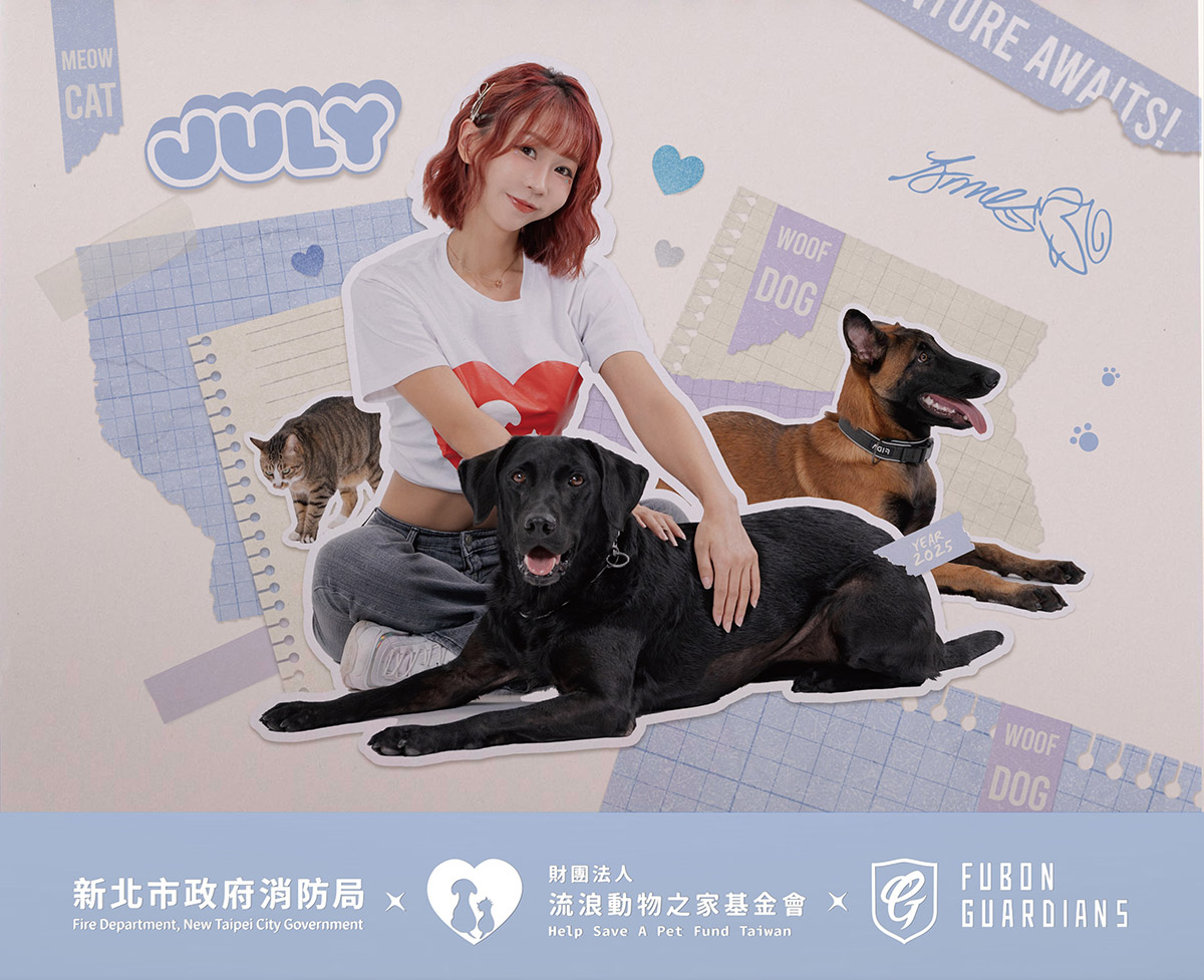 財團法人流浪動物之家基金會至今成立 37 年,致力於救援流浪動物,並為許多老弱傷殘的浪浪們提供長期照護,特別是今年在 403 花蓮地震與多次颱風過後,需要更多資源來改善環境,於是今年「流浪動物之家」聯手「新北消防局搜救犬」以及富邦啦啦隊「Fubon Angels」一起拍攝 2025《浪浪の汪汪隊》公益月曆。熱情參與的富邦女孩們安娜、秀秀子、東東、蓁蓁、Jessy、卡洛琳聯手熱情應援流浪動物之家,更無償贊助所有拍攝,面對這群充滿活力的女孩們,訓練有素的搜救犬們也在愉快的氛圍中不自覺地放開了心防,逐漸變得活潑起來,展現了出乎意料的默契,拍攝比原訂的時間提早 3 個小時完美收工,也希望藉由這次合作感謝搜救犬在每一個救援任務中的無私奉獻。