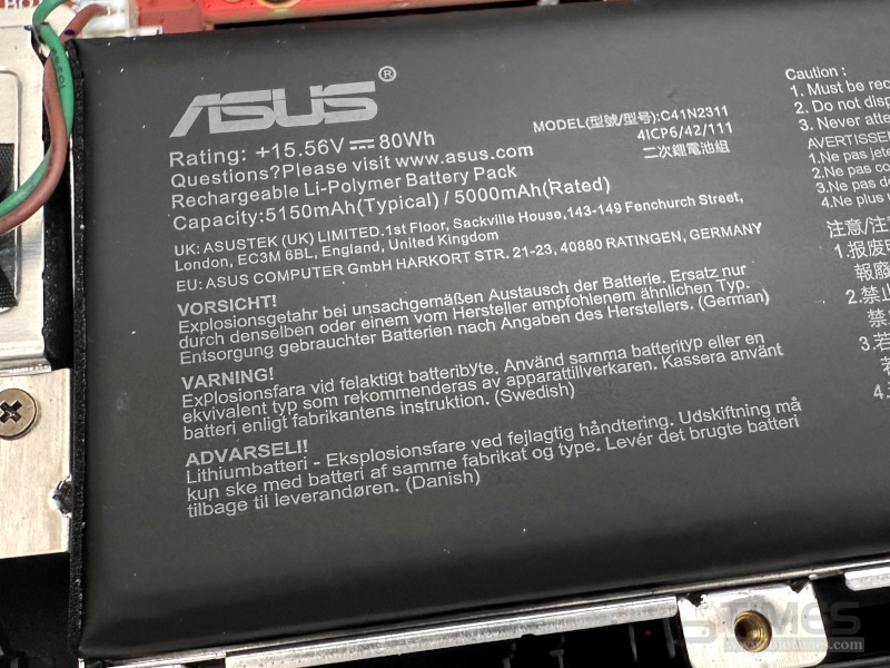 正下方位置則是 M.2 SSD,改成 M.2 2280 尺寸也讓玩家在需要更大容量擴充時的 DIY 升級顯得更方便,內建版本採用的是 WD PC SN560 NVMe、容量為 1TB,最下方的電池部分則是提升到 80Wh,算是一解之前 Ally 的電源續航弱項,需要高負載使用時的實用度大增。