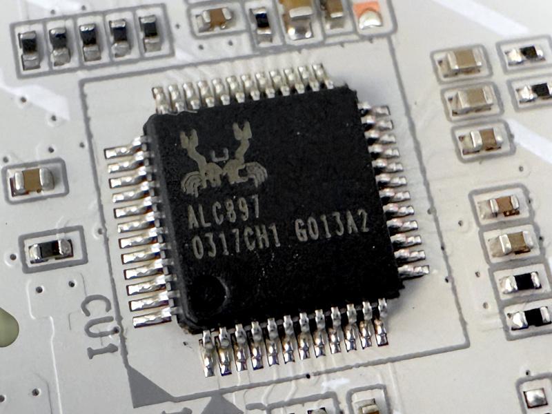 主機板上的功能晶片也相當多,基本上也是用好用滿的概念,包括有:Reaktek RTL8125D 2.5GbE LAN 網路晶片、Realtek ALC897 音效晶片、RGB + Q-Flash plus 控制器 iTE IT5711E、iTE IT8696E環控晶片、USB 3.2 Gen 1 Hub 晶片 Realtek RTS5411S、PWM 控制晶片 RT3678BE、USB 2.0 Hub 晶片 Genesys Logic GL850G、Type-C PD 控制晶片 Realtek 5441S、PCIe Gen5 切換/中繼器 (2顆) JYS13008MF01…等。
