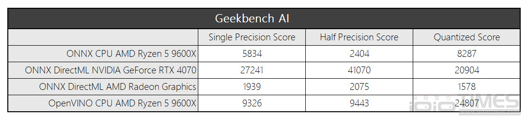 最後,簡單透過 Geekbench AI 來看一下各項測試成績,基本上這個平台組合表現算是相當不錯的,對於非終極玩家來說,選用這樣的組合配置對於日常使用以及娛樂遊戲上的對應都算是十分OK的了!